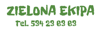ZIELONA EKIPA – To firma zajmująca się kompleksowymi pracami na około posesji klienta, podstawowa nasza działalność to zakładanie ogrodu, ale wychodząc na przeciw wymaganiom klientów wykonujemy również kostkę brukową, tarasy z kostki, montujemy ogrodzenia, małą architekturę drenaż terenu oraz wiele innych rzeczy potrzebne do tego by Klient cieszył się swoim ogrodem, i całym terenem go okalającym.
